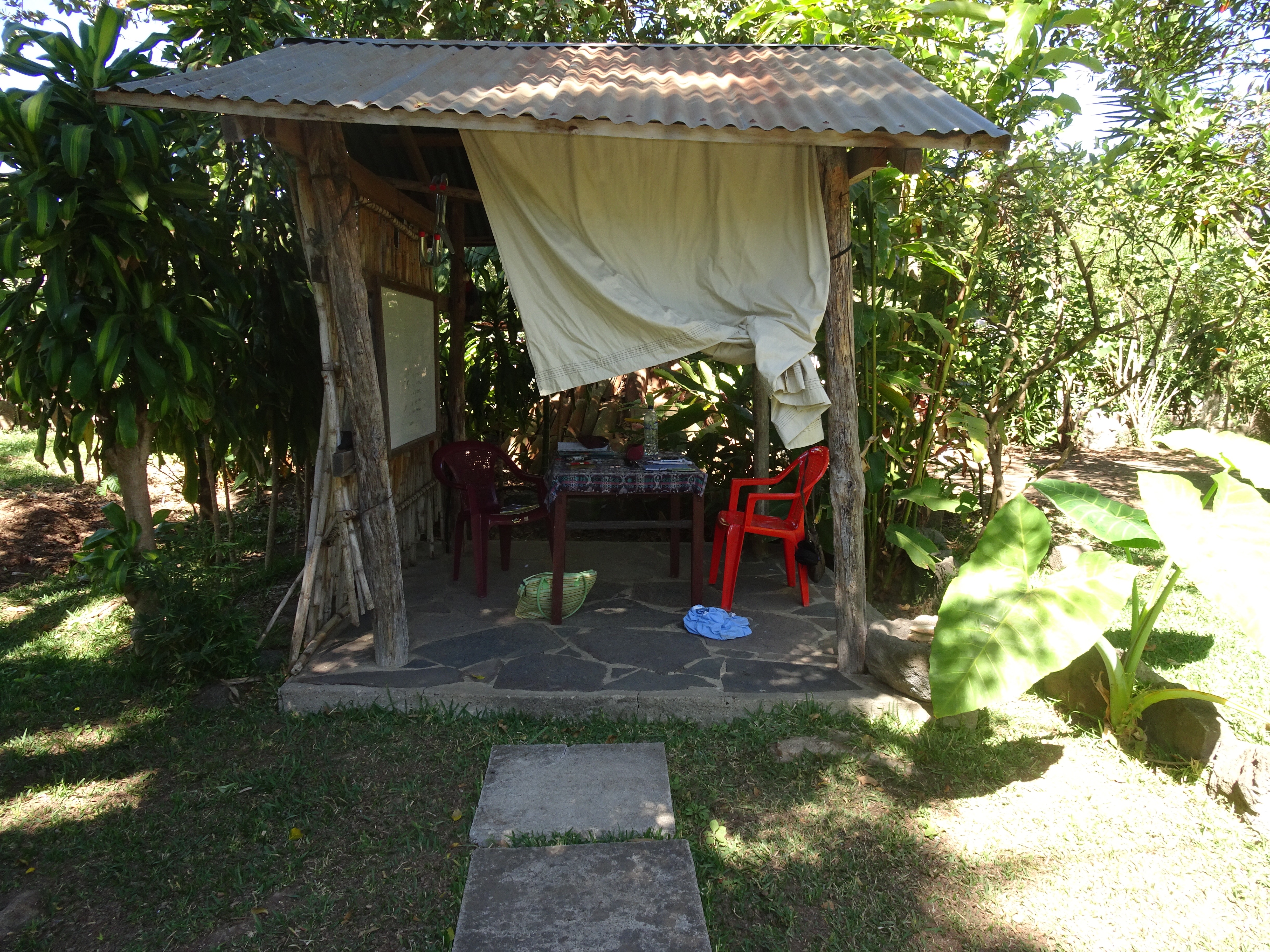 La salle de classe est idyllique en plus comme tu n’as pas de fenêtre dans ta chambre au moins tu passes la journée à l’air libre ! Vous faites comment s’il pleut, tu n’as pas cours ?