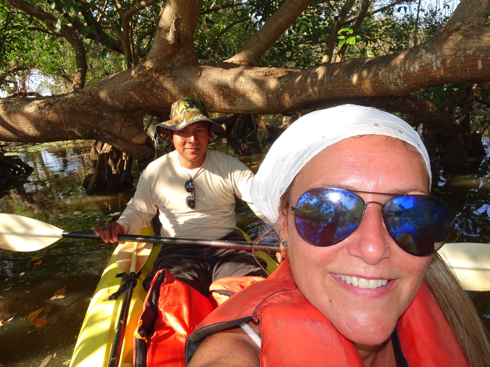 Hier c’était kayak : tour de 3h sur le lac et rivière Rio Istian à la découverte des caïmans, tortues et différents oiseaux