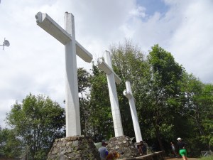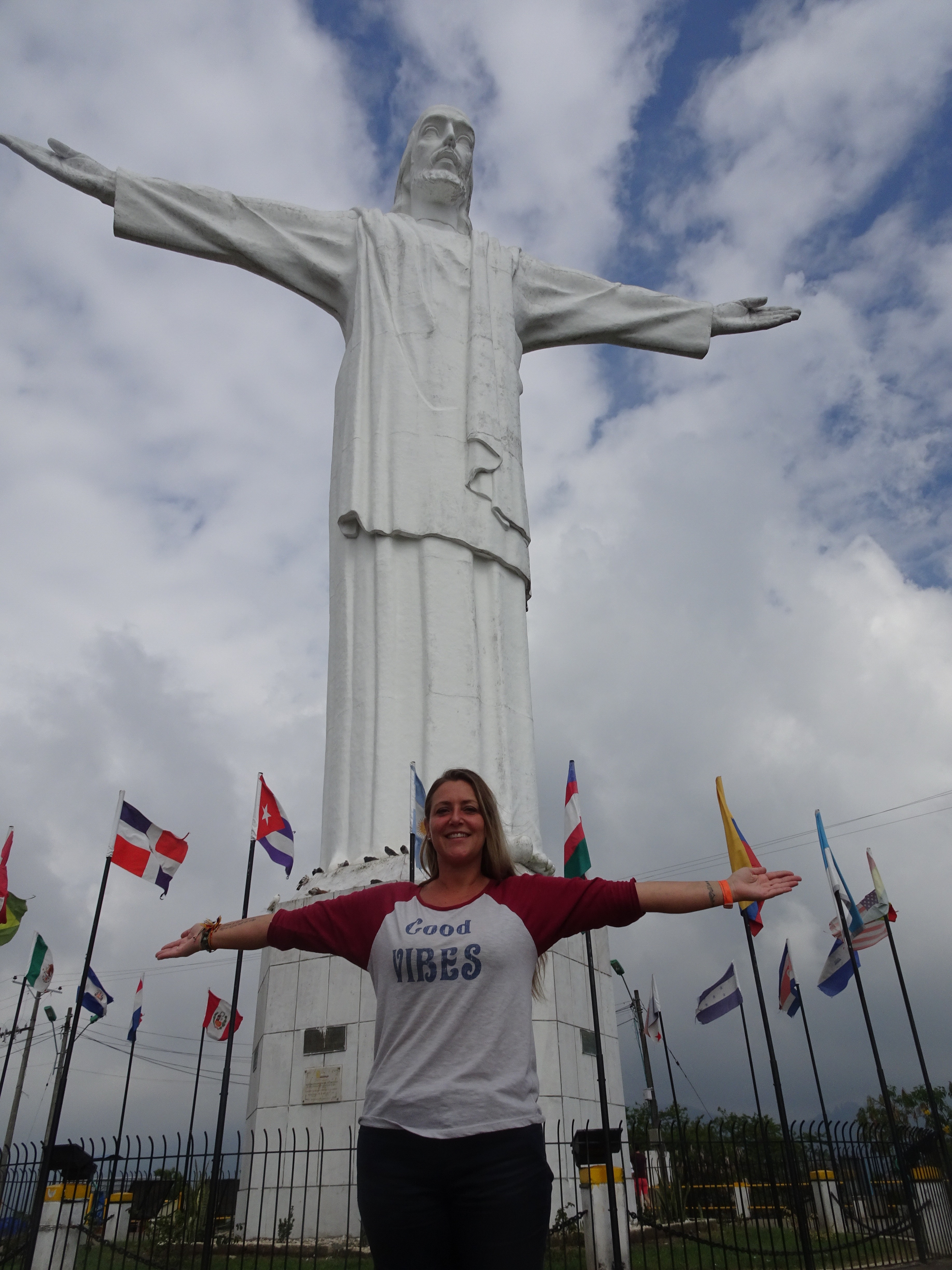 Je monte au Cristo 26m de haut + socle de 3m. Entre les deux bras 19m d’envergure. Deux sculpteurs différents ont réalisés cette statue. Un Colmbien la tête et les bras. Il n’a pas terminé par faute de moyen. C’est un italien vivant en Colombie qui a achevé l’œuvre.