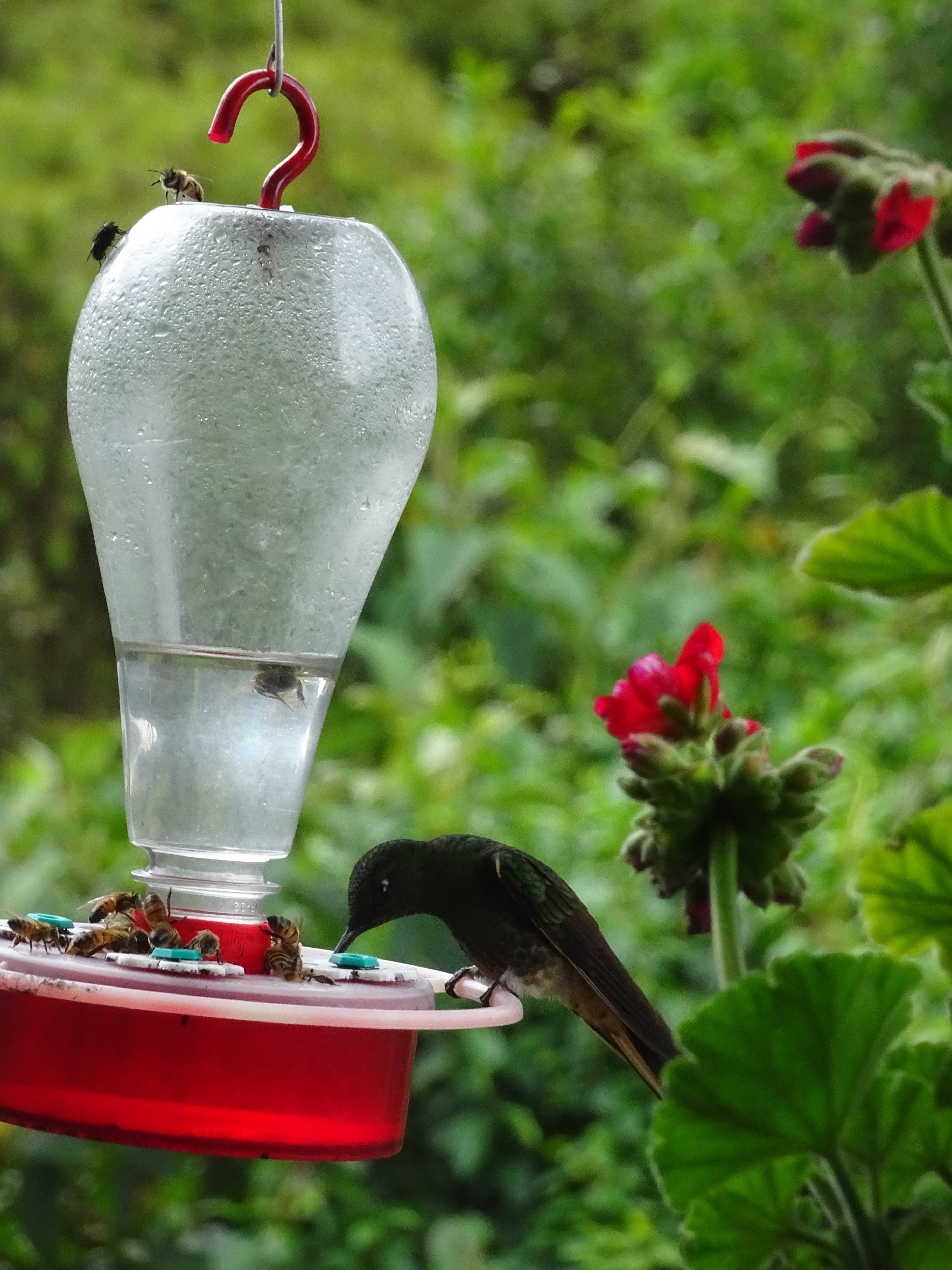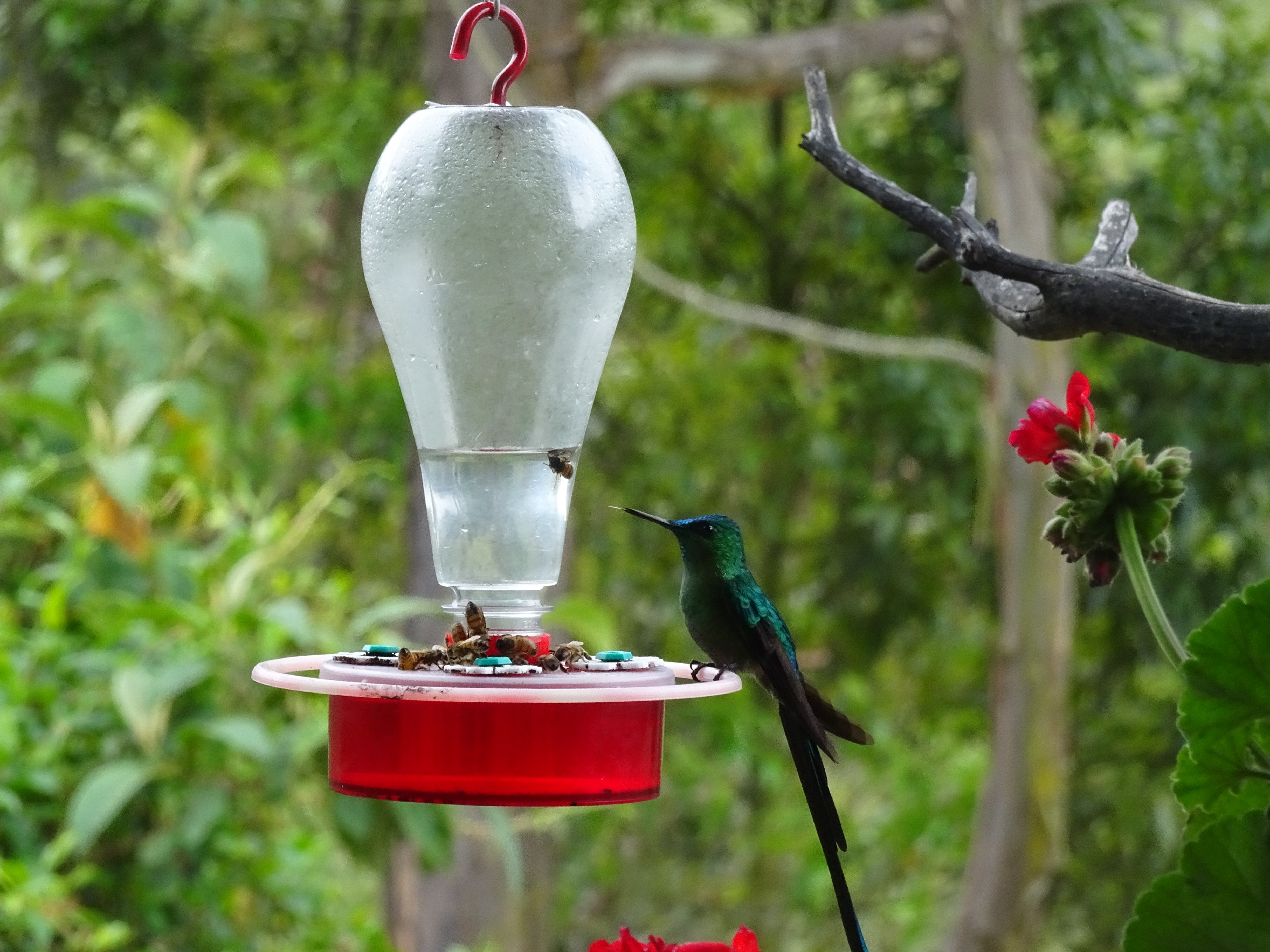 Nous nous arrêtons dans une ferme et ils demandent à la propriétaire si il y a des colibris dans le coin. Elle nous ouvre sa ferme et depuis le balcon je peux admirer ces minuscules oiseaux colorés ! Encore une nouvelle découverte ! Nous lui achetetons du fromage que nous dégustons avec de la panela (sucre de canne naturel) ils aiment bien l’aigre doux dans les parages. Il est aussi très commun de boire un chocolat chaud avec du fromage.