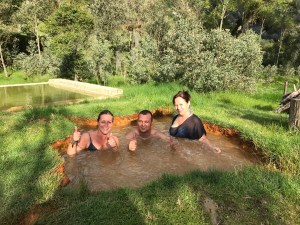Finalement nous découvrons ces fameuses eaux thermales ! À nouveau c’est pas Lavey, mais nous arriverons quand même au final à être 10 dans ce mini jacuzzi naturel. Je n’ai évidemment pas de maillot de bain. Une des dames de la famille me prête un short et hop baignade en short et soutien-gorge !