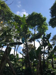 Dans cette finca ils utilisent un système de permaculture les plantes de bananes et arbres au milieu de la plantation protègent du soleil et aident pour l’humidification de la terre. Il n’y a pas de système d’arrosage et tout se récolte à la main !