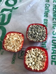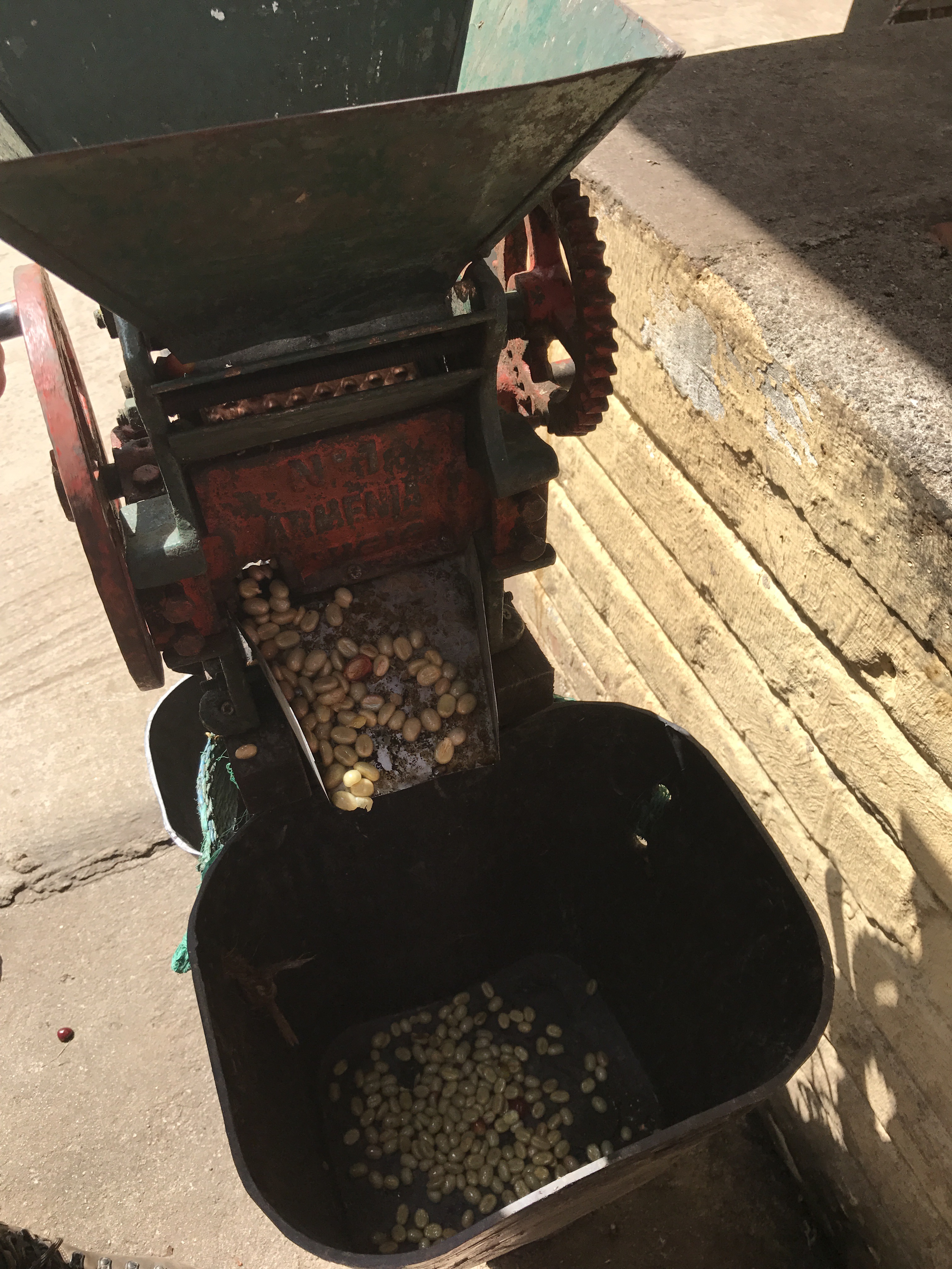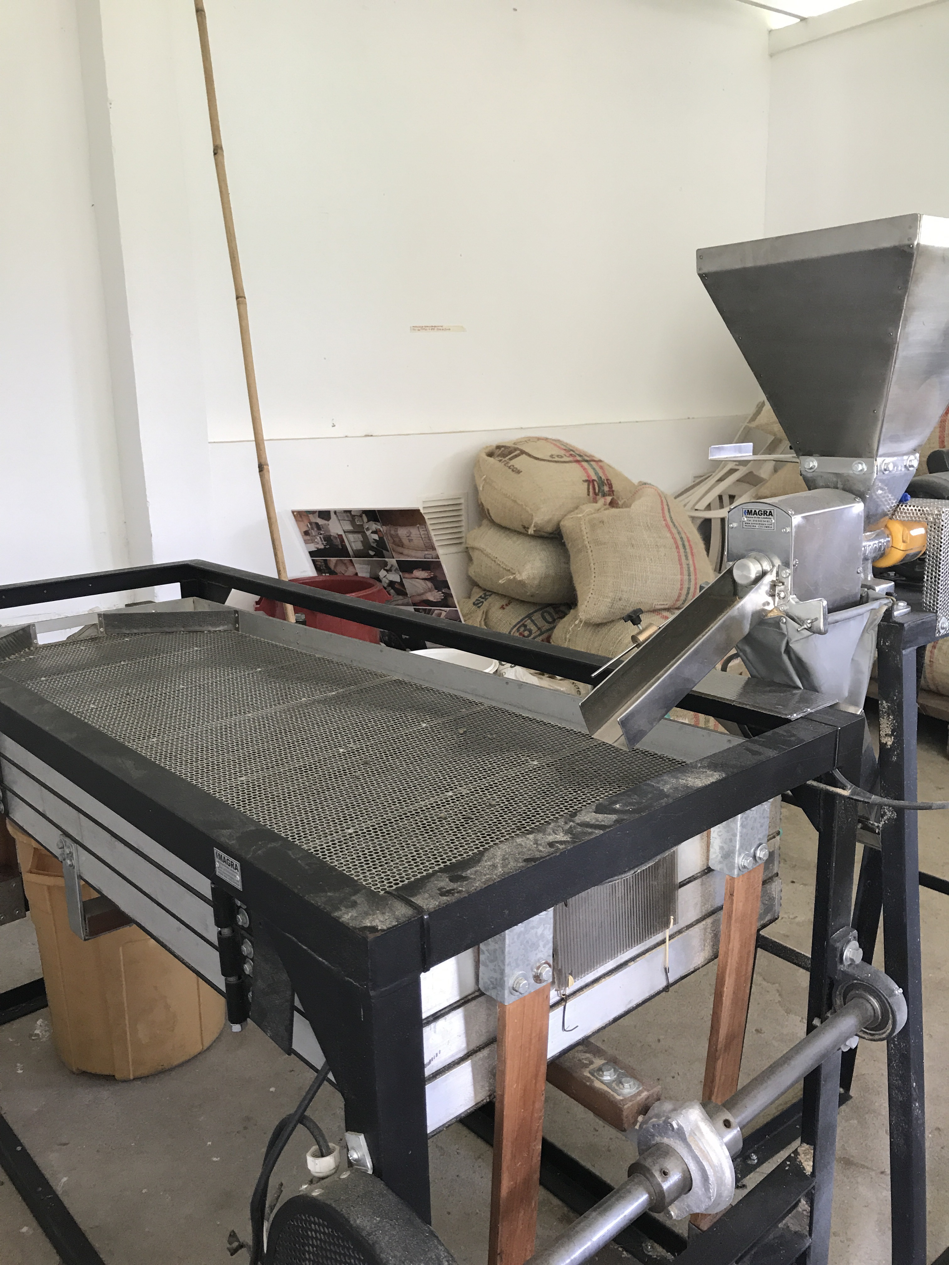 Le café passent ensuite dans une machine pour perdre sa dernière écorce et est, en même temps, trié par taille.