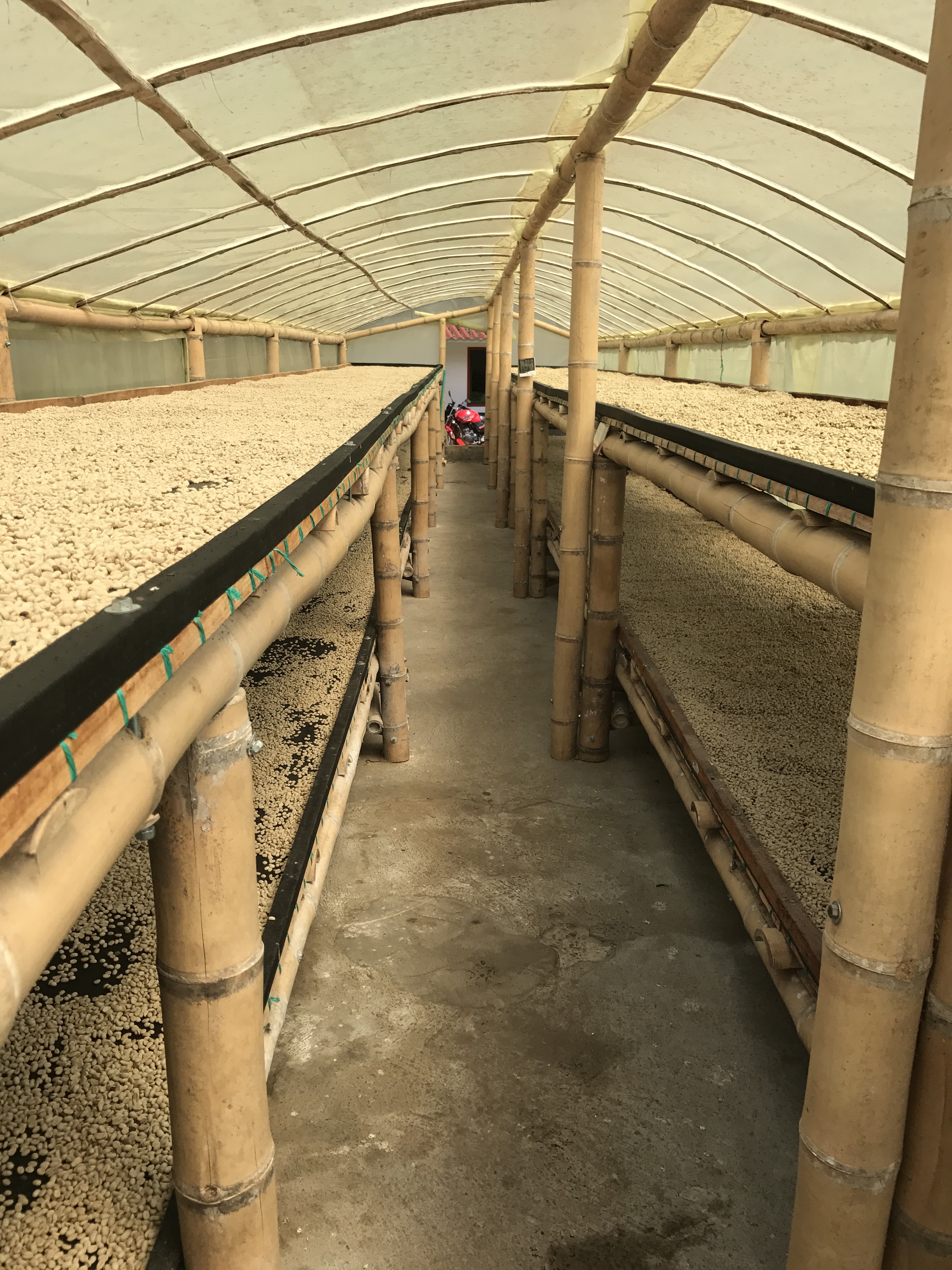 Le grain de café passe environ 12h dans l’eau et est ensuite séché à l’air libre entre 5 jours et une semaine en fonction de l’ensoleillement ou à l’aide d’une sècheuse. Ils utilisent la dernière écorce du grain de café comme combustible.