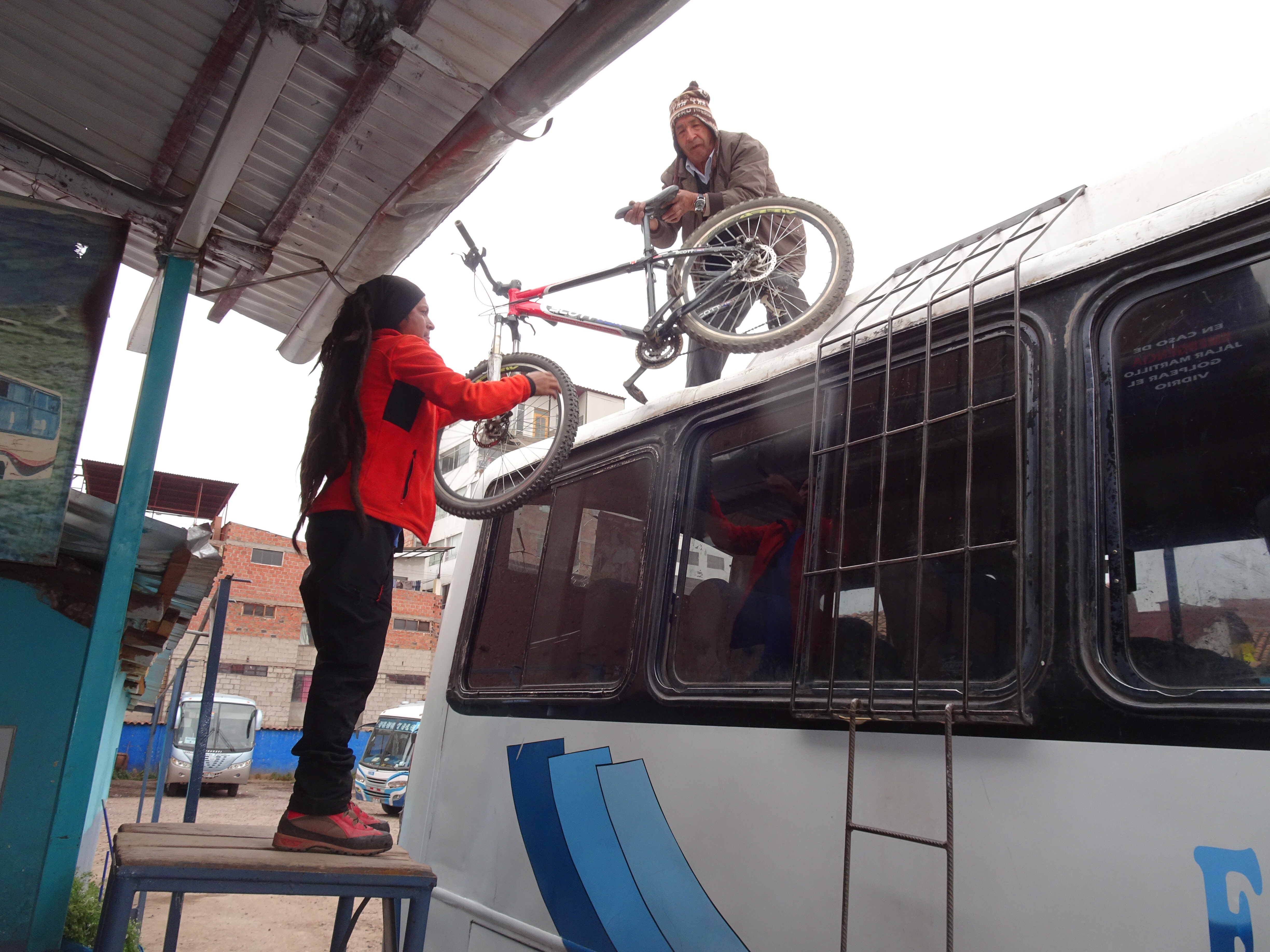 Le 4eme jour colectivo pour le sommet Abramalaga à 4300m. Là les choses se gattent, nous commençons les 60km de descente avec le brouillard pour ensuite se faire rincer ! Il fait froid et nous sommes trempés. Nous ferons deux arrêts avant d’apercevoir enfin le ciel qui se dégage !