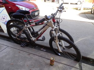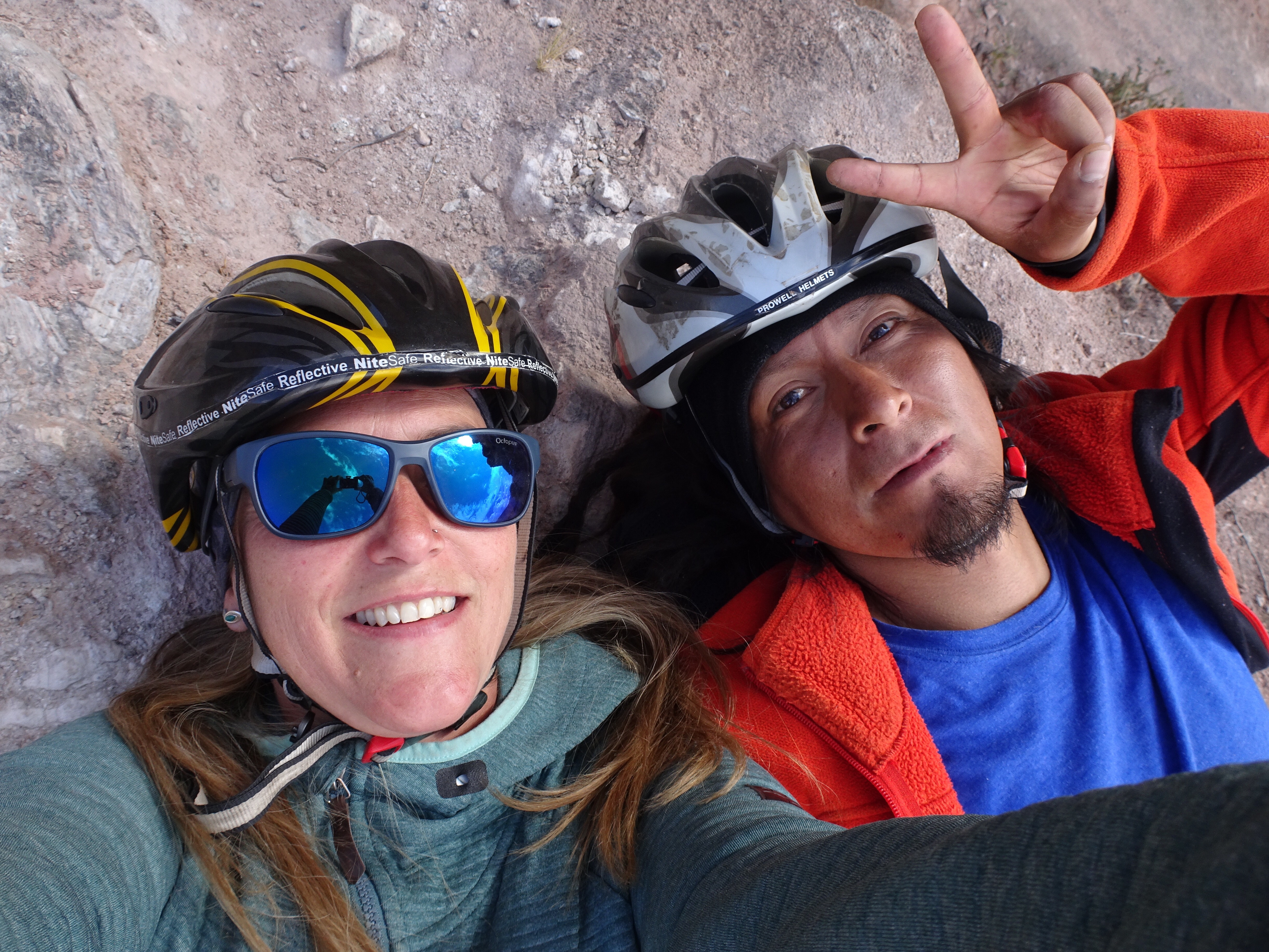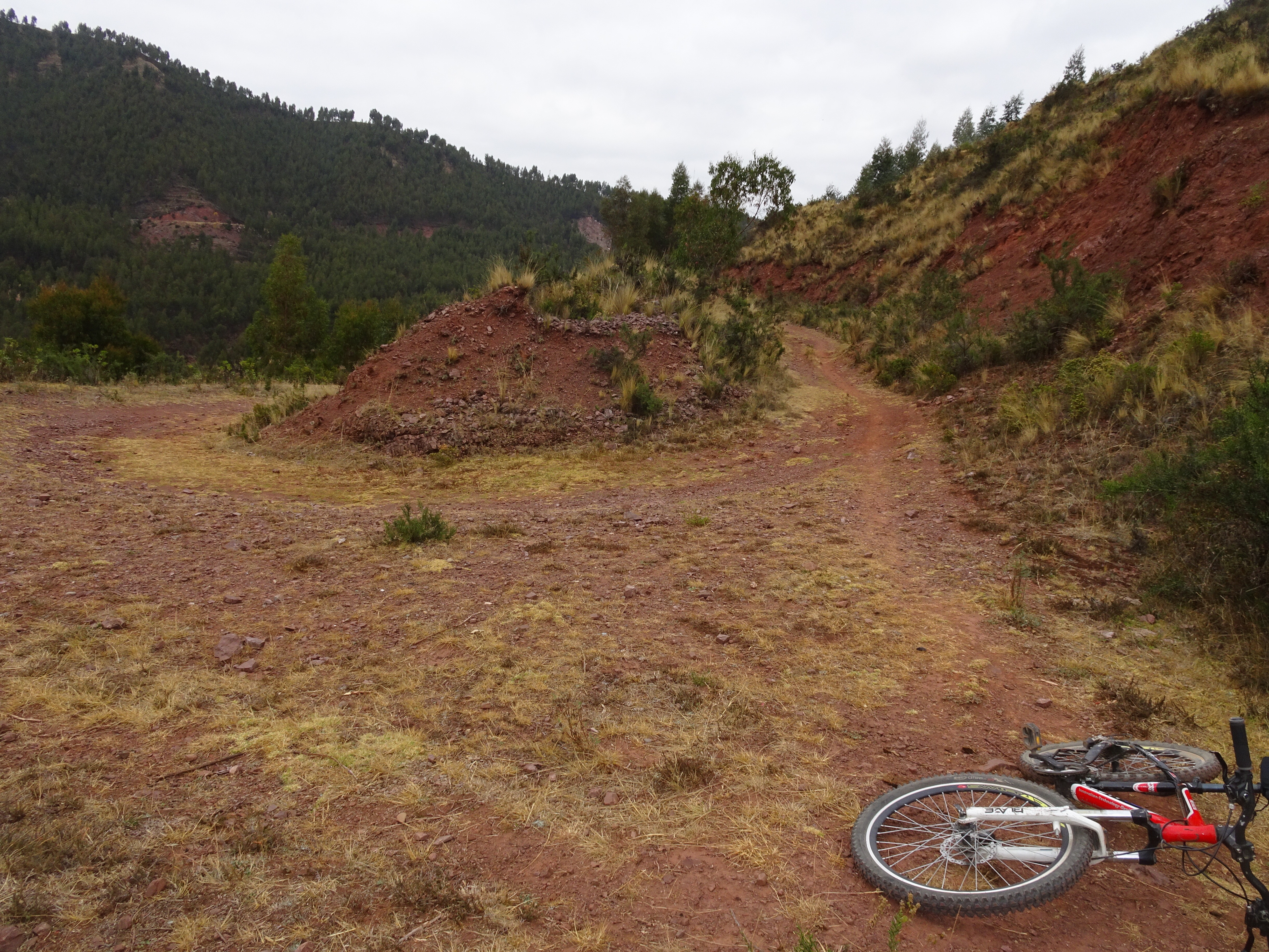 Ca commence fort la descente est sur un terrain terreux et pierreux, je ne suis pas super à l’aise, il faut que j’apprivoise mon vélo. J’ai mal aux mains à force de freiner et en fin de journée j’ai mal au c…