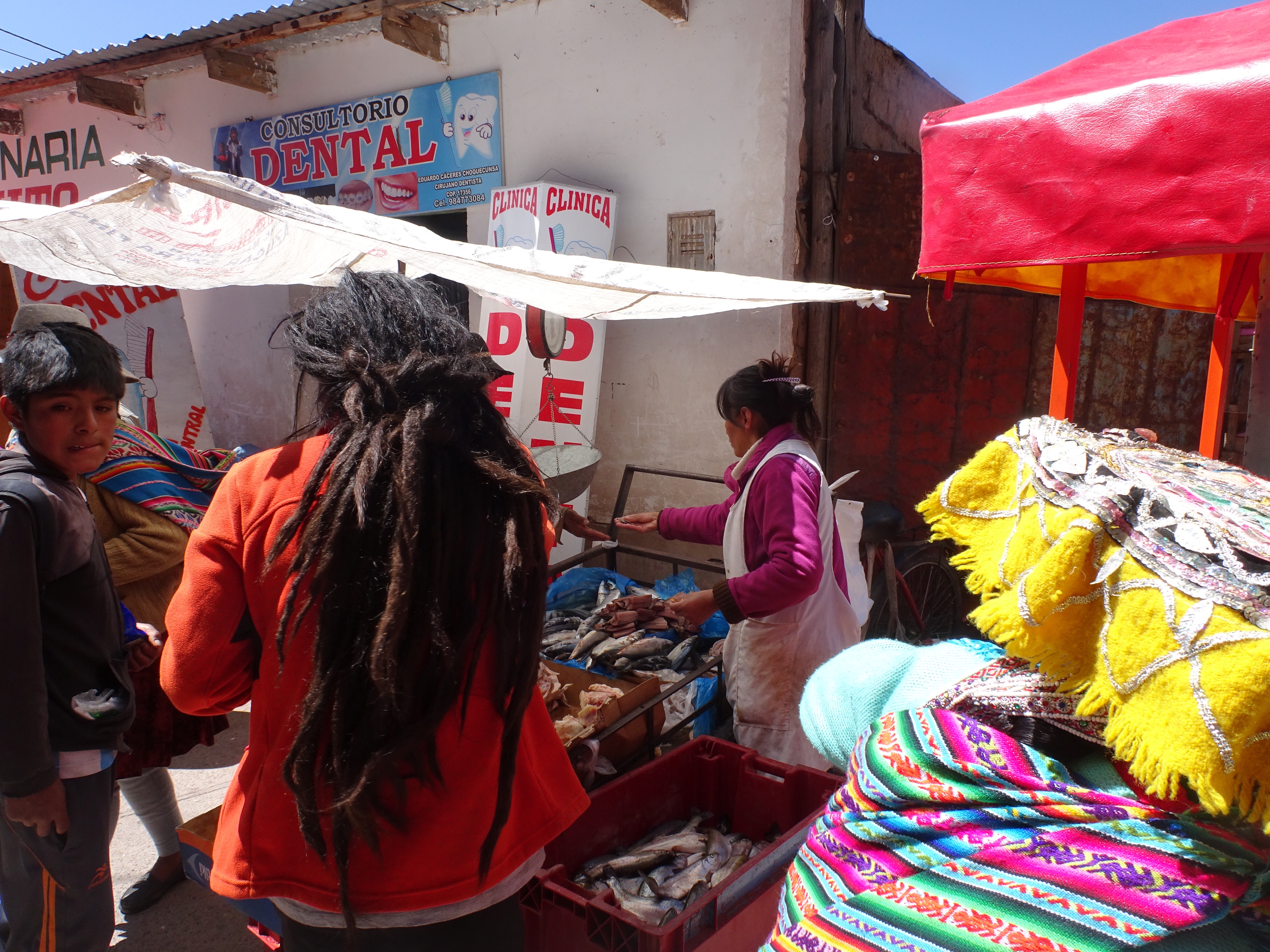 Le 2eme jour, après un déjeuner au marché nous partons de Calca en colectivo jusqu’à un sommet a plus de 4000m et c’est parti pour 2h de descente sur Lares.