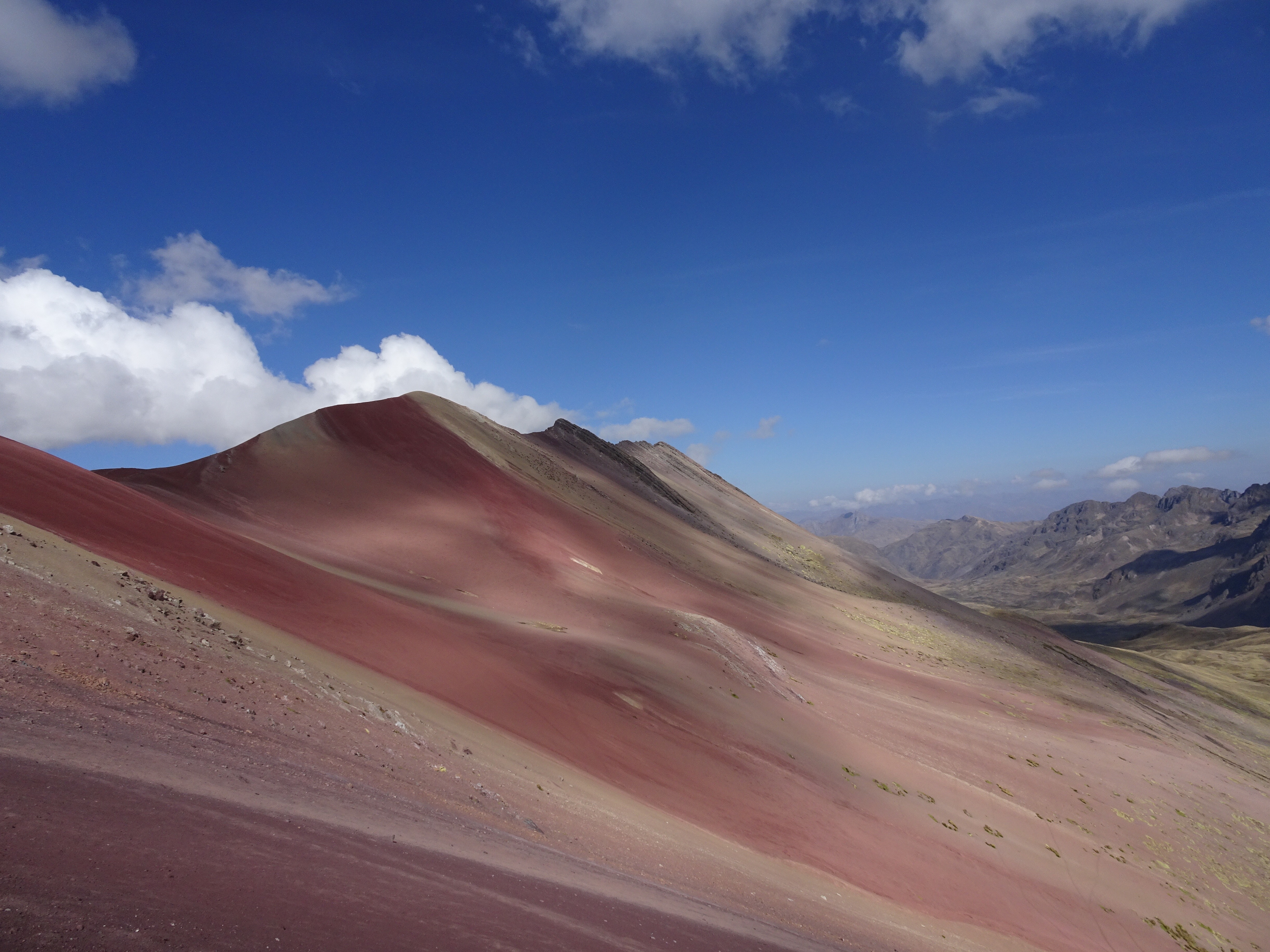 Alberto est le seul à proposer de redescendre par l’autre côté de la rainbow mountain c’est à nouveau l’occasion de découvrir d’autres couleurs de montagnes toutes aussi incroyables les unes que les autres ainsi que des rencontres improbables avec les locaux touts contents de voir du monde !